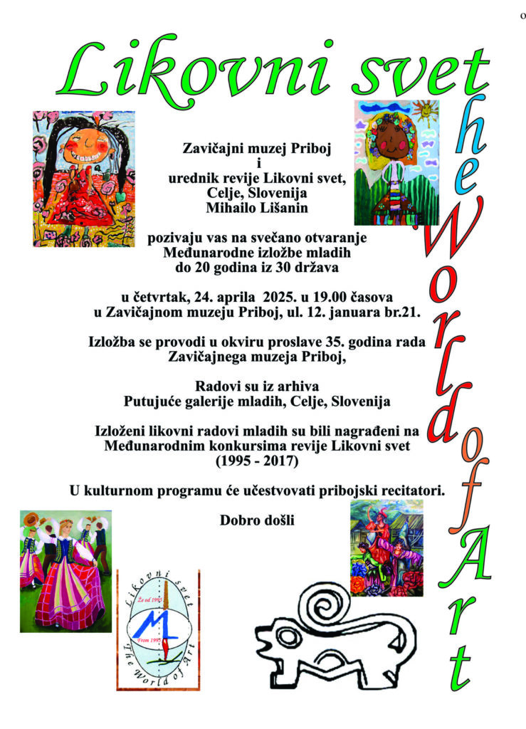 Међународна изложба слика младих уметника ”Ликовни свет”, чији је аутор Михаило Лишанин, биће отворена у четвртак у Галерији „Надежда Нада Виторовић“ у Завичајном музеју Прибој .